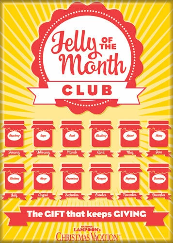 3 1/2″ x 2 1/2″ magnet of Jelly Of The Month Club. The GIFT that keeps GIVING National Lampoon’s Christmas Vacation.