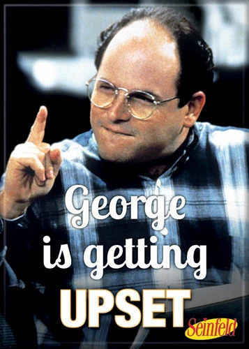 3 1/2″ x 2 1/2″ magnet ofย George Costanza’sย famous quote “George Is Getting UPSET.”