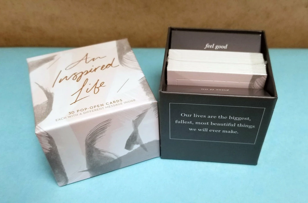 Be inspired by everything you are. Little pop-open cards with messages inside are one of our most popular gifts. Outside, you’ll find elegant designs to brighten your spirits and catch your attention. Inside, you’ll find timeless messages of inspiration to capture your heart. Each box includes 30 pop-open cards, each with a different inspiring quotation.