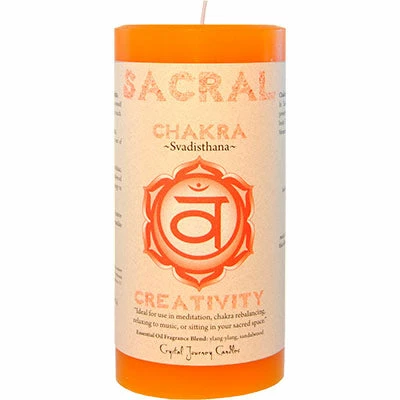 This vibrant orange candle contains a unique blend of ylang-ylang and sandalwood oils. The color orange is associated with the sacral or Svadisthana chakra and represents creativity, pleasure, emotions and procreation. Use its energy to increase, Intimacy, Sensuality, Confidence, and Sociability. Orange connects you to others through feelings. Chakra Candles are ideal for use in sacred spaces, for meditation, chakra rebalancing and to create a warm and relaxing environment.