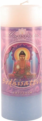 The Mandala Collection pillar candles from Crystal Journey Candles are a unique size at 2.5″ in diameter by 6″ in height, and will burn over 70 hours blended with oils created just for this collection. This collection is lovingly and mindfully crafted Crystal Journey Candles, hand poured using the finest wax and an exotic blend of essential oils with wicks made of paper and cotton only. All Crystal Journey candles are hand crafted in Connecticut. Each candle in this collection is sold individually, including: