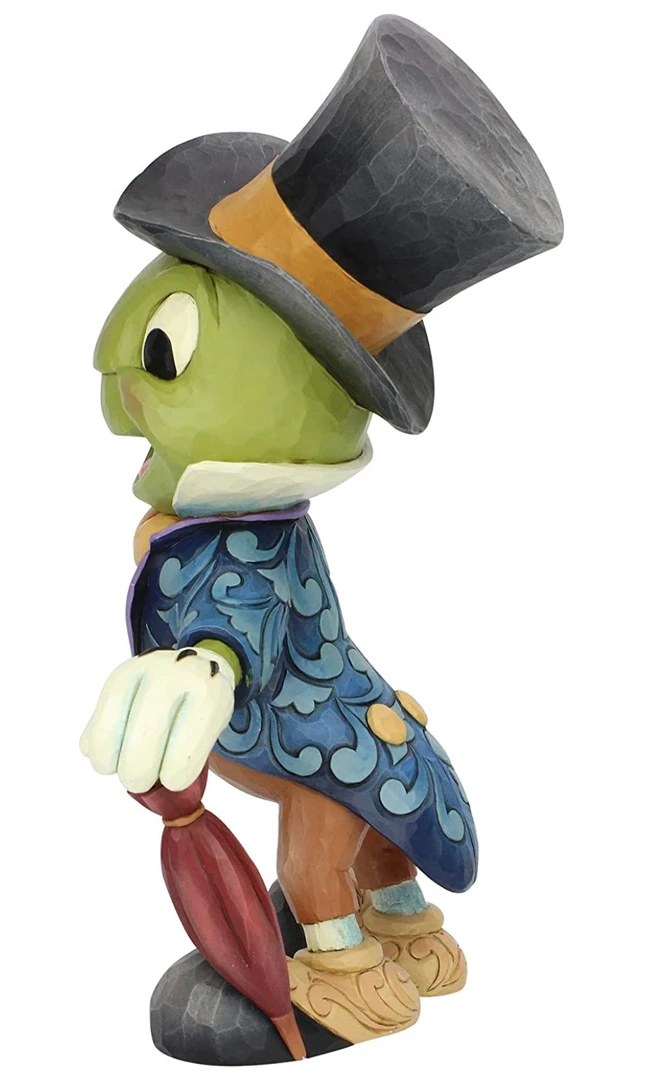 Jiminy Cricket, Pinocchio’s conscience, smiles brightly in this Jim Shore figurine. Dressed in his classic suit, ascot, and top hat, Disney’s unofficial mascot holds his umbrella ready to issue advice to anyone in moral dilemma.