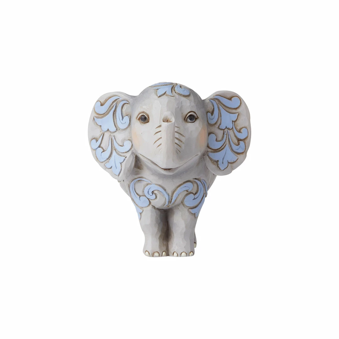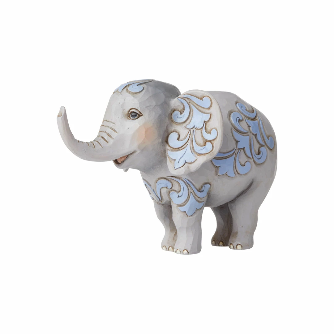 Jim Shore’s handcrafted Heartwood Creek collection imparts a sense of hope and nostalgia, embracing inspiring themes of family, tradition, spirituality and patriotism. His designs are inspired by the time honored motifs of handcrafted folk art. The world’s largest animal becomes the teensiest in this dainty Jim Shore miniature. With a sweet smile, trunk raised for good luck, and gorgeous rosemaling this elephant is a treasure you’ll never forget. Designed with Jim Shore’s beautiful rosemaling and quilt patterns, hand-crafted styling and hand-painted details crafted from high-quality stone resin. Measures 3.5 in H x 3 in W x 4.75 in L