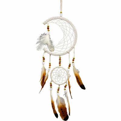 Dream catchers are an ancient spiritual tool used to protect the sleeper from bad dreams. A dream catcher should be hung over the place you sleep and where the morning light can hit it. All dreams will then filter through the dream catcher, where good dreams will glide down the feathers to the sleeper below and bad dreams will get caught in the web and be destroyed by the first beam of morning light.