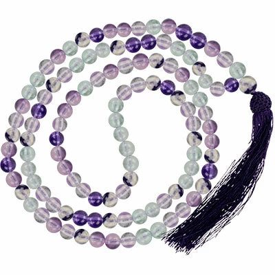 These elegant 108-bead malas are made of fluorite. Fluorite – Known for heightening intuition and can help maintain an unbiased impartiality when decisions need to be made.