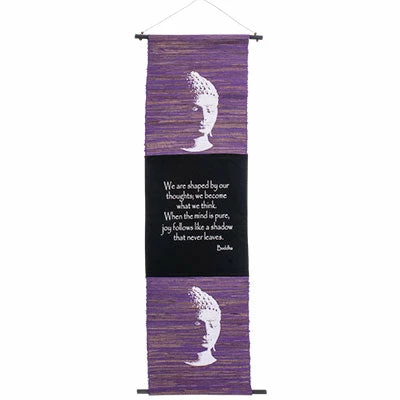 This stunning sea grass and cotton wall banner inspires the viewer with a proverbial quote straight from the concept of the Buddha. At 48 inches in height and dyed a lovely purple, the banner features two striking images of the Buddha and is sure to inspire all who encounter it. 18″ x 51″