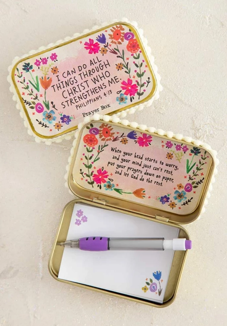 Prayer is Powerful! Open the lid of this I Can Do Anything Prayer Box for an inspirational message and write down your prayers with the included paper and tiny pencil. This makes the sweetest gift for graduation, communion and holidays!