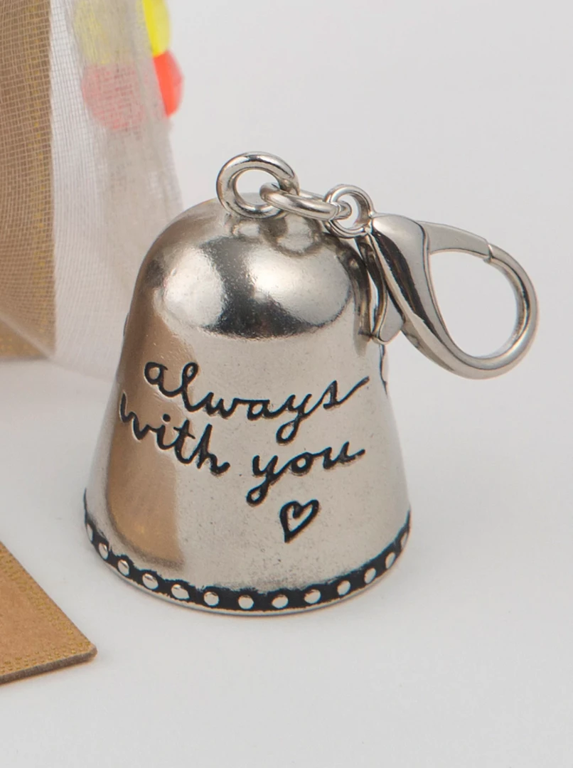 - The tiny silver bell comes in a soft organze bag with a sweet card telling the Blessing Bell story. Clip to your bag, keys or carry in your pocket. Features debossed details and lobster clasp.