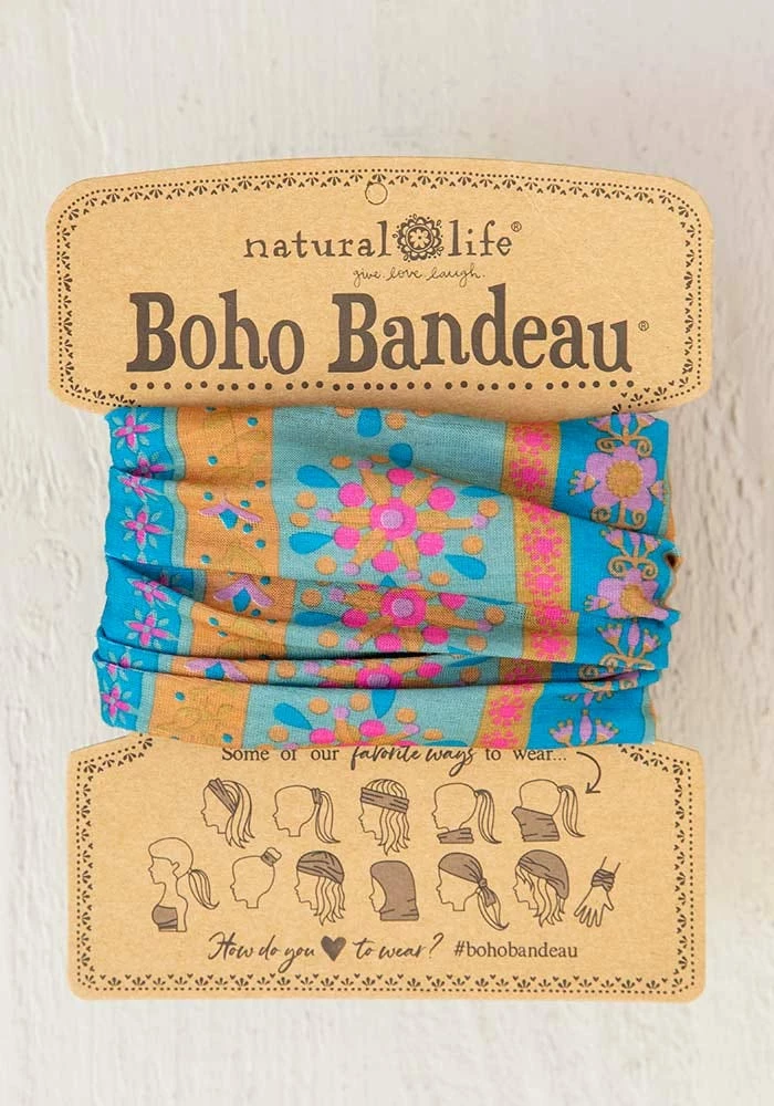 Everyone loves the Boho Bandeauยฎ and all the different ways to wear them! They are so cute & casual we like to call them “effortless outfit makers”! They don’t slip on your head and are perfect for bad hair days, exercise, the beach, backpacking and even underneath a sundress as a bandeau! Soft & versatile. Packaging includes instructions on how to wear bandeau 12 different ways Composition: