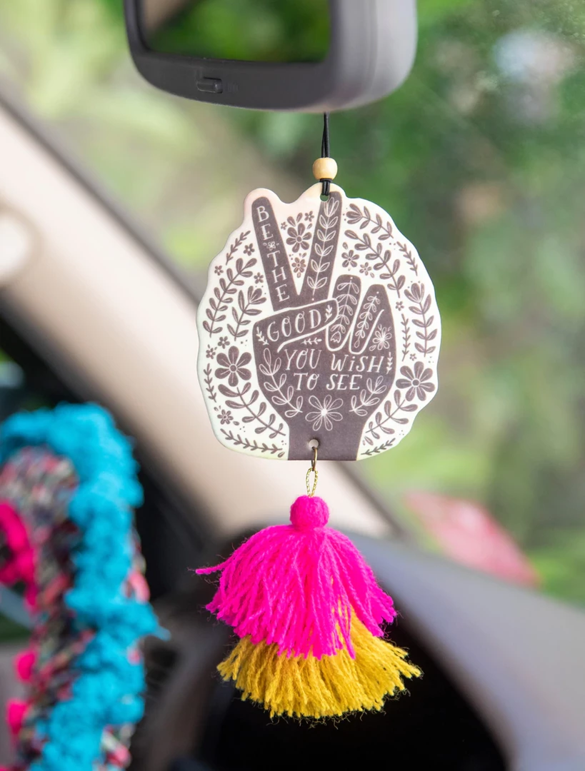 - Scent: Ocean, Features a stacked tassel and a wooden bead on an elastic hanger for easy placement. Double-sided, full-color quality printing