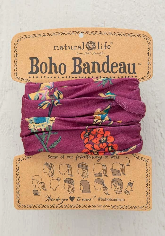 Everyone loves the Boho Bandeauยฎ and all the different ways to wear them! They are so cute & casual we like to call them “effortless outfit makers”! They don’t slip on your head and are perfect for bad hair days, exercise, the beach, backpacking and even underneath a sundress as a bandeau! Soft & versatile. Packaging includes instructions on how to wear bandeau 12 different ways Composition: