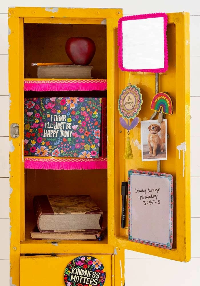 This Locker Box is SO fun!! It comes filled with so many treasures to decorate your locker inside & out! Our favorite part is the fun adhesive trim to put on the shelves, inside of the door or even on the outside to inspire others!