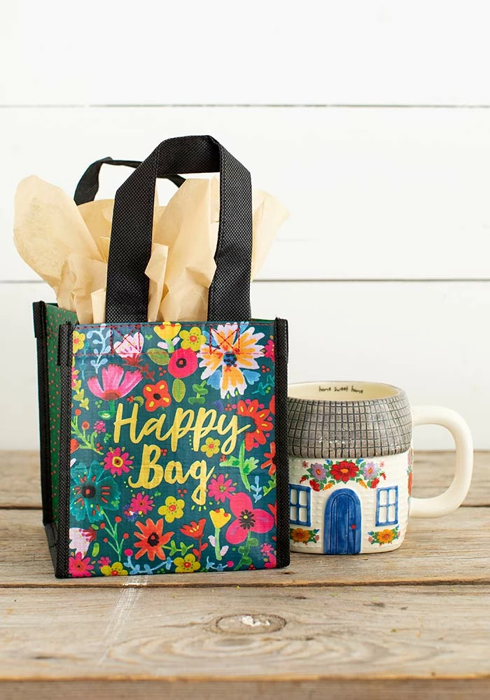 These bags are our favorite for so many reasonsโฆ they’re made with recycled water bottles and never get dog-eared so you really can use them forever! They make the cutest goody bags and they’re the perfect size for gifting our fun mugs. Reusable bag features nylon webbed handles. Measures 5.5in L x 5in W x 6in H, 4in handle drop. Materials rPET, made with 80% recycled plastic water bottles. Mugs sold separately.
