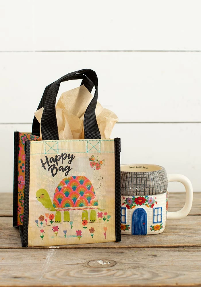 These bags are our favorite for so many reasonsβ¦ they’re made with recycled water bottles and never get dog-eared so you really can use them forever! They make the cutest goody bags and they’re the perfect size for gifting our fun mugs. Reusable bag features nylon webbed handles. Measures 5.5in L x 5in W x 6in H, 4in handle drop. Materials rPET, made with 80% recycled plastic water bottles. Mugs sold separately.