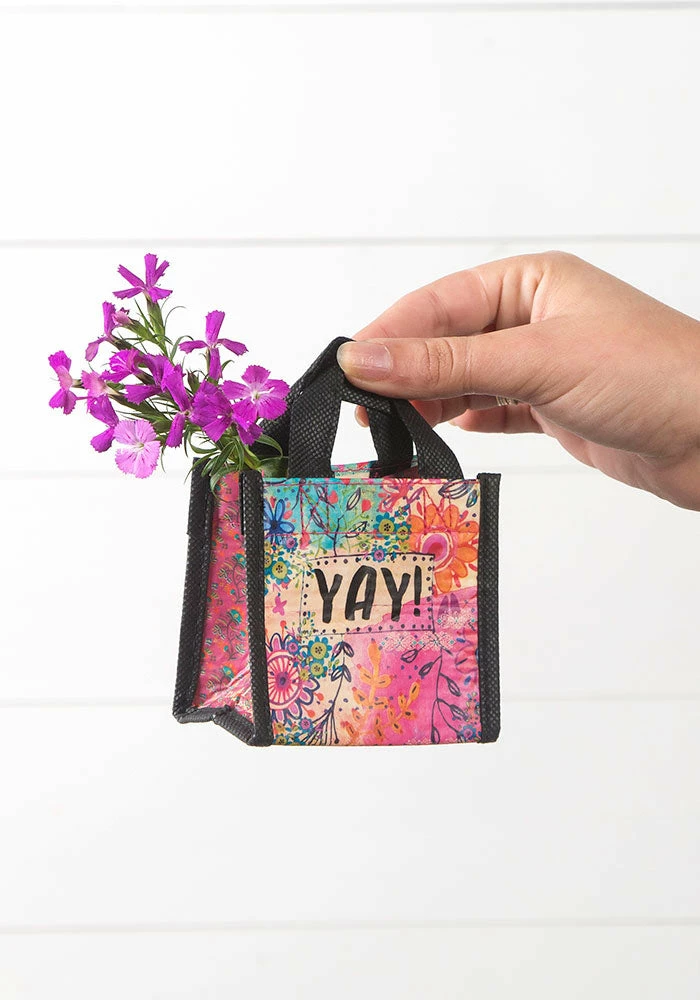 These bags are our favorite for so many reasonsโฆ they’re made with recycled water bottles and never get dog-eared so you really can use them forever! They make the cutest goody bags and they’re the perfect size for gifting mini succulents, jewelry, keychains and little accessories! Reusable bag features nylon webbed handles. Measures 3.5in L x 2.5in W x 3.5in H, 2in handle drop. Materials rPET, made with 80% recycled plastic water bottles.