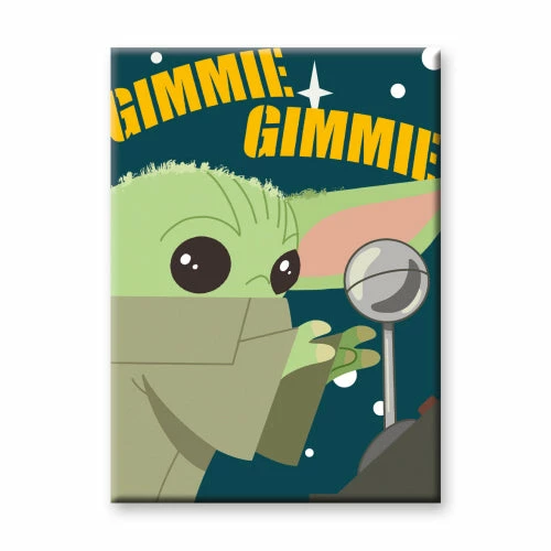 3 1/2″ x 2 1/2″ magnet of Gimmie Gimmie The Child Mandalorian Star Wars