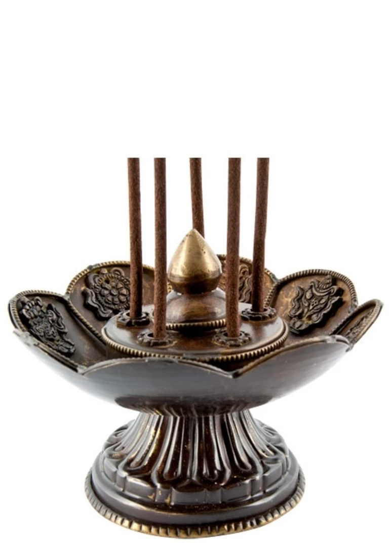 Lotus Tibetan Copper Incense Burner Antique Finish – 5″ Diameter, 3.75″ Height.