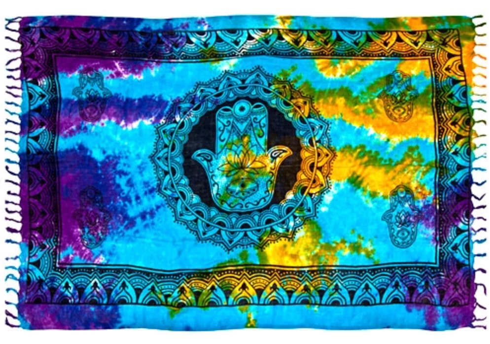 Silky Rayon Hand of Fatima Scarves/Altar Cloth in Tye Dye Prints with Fringe – 42″X68″