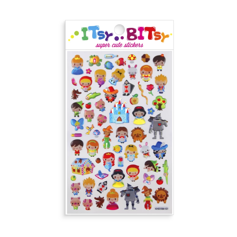 Single sheet of cute size stickers featuring fairy tale characters. Why wait for bed time for a fairy tale when you can create your own whenever you want? Check out all the fairy tale fun. Stick them on papers, journals, your cell phone … stick them just about anywhere.