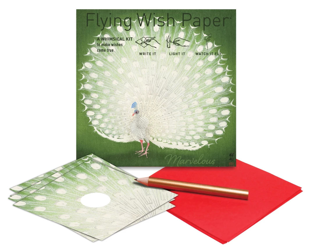 3. Light it, Stand the tube vertical on the Wish platform and touch a match to the top edge. Don’t blow out the match in the direction of the tube. If it topples, it’s easy to move your Flying Wish Paper back to the platform, but be quick!