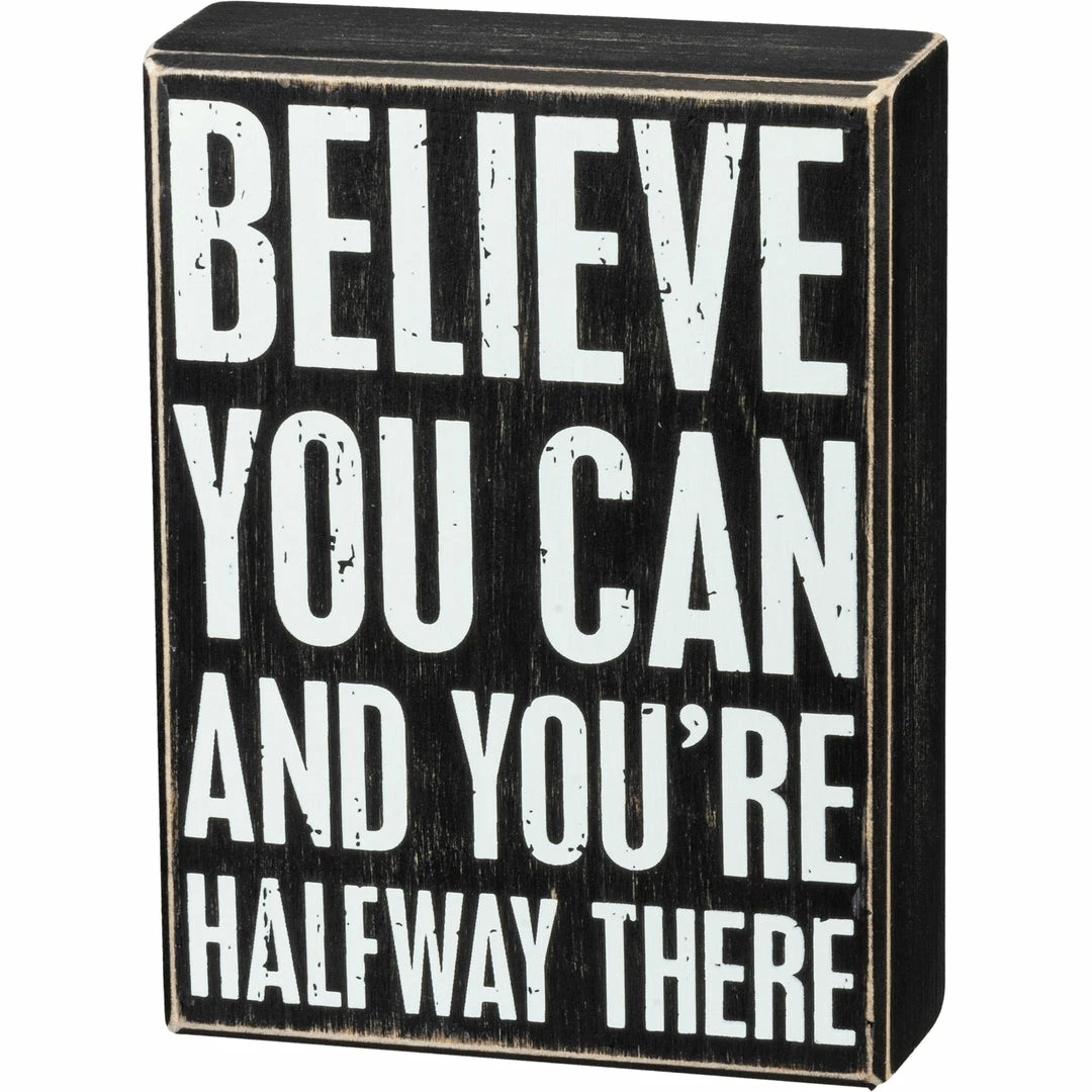 A classic wooden box sign featuring a “Believe You Can And You’re Halfway There” sentiment. 5″ x 6.75″ x 1.75″