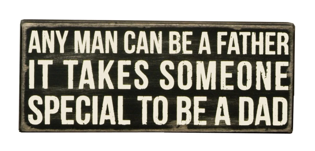 A classic black and white wooden box sign featuring a distressed “Any Man Can Be A Father – It Takes Someone Special To Be A Dad” sentiment. Easy to hang or can free-stand alone. 10″ x 4″