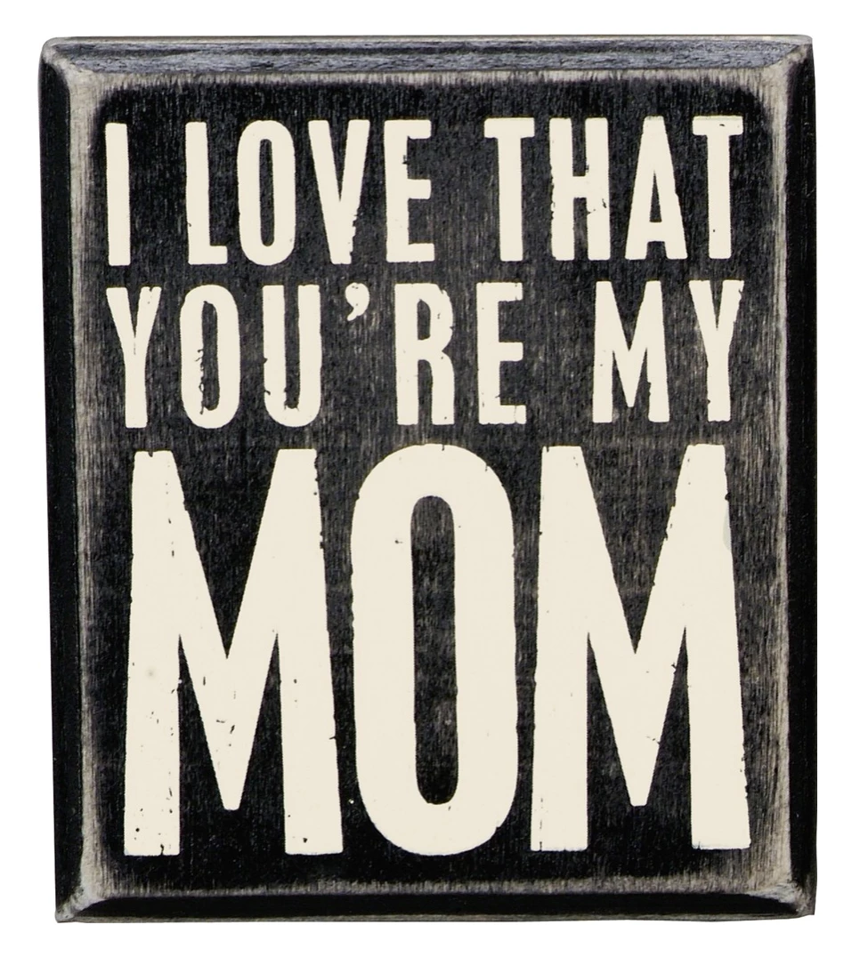 A classic black and white wooden box sign featuring a distressed “I Love That You’re My Mom” sentiment. Easy to hang or can free-stand alone. 3.5″ x 4″