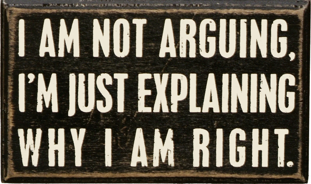 A classic black and white wooden box sign featuring a distressed “I Am Not Arguing, I’m Just Explaining Why I Am Right” sentiment. Easy to hang or can free-stand alone.