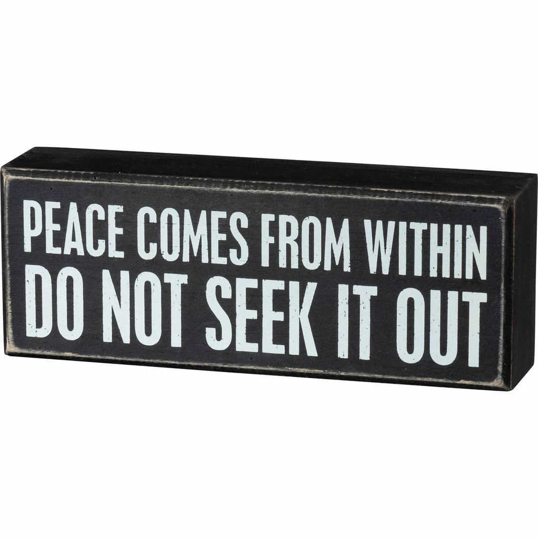 A classic box sign featuring a “Peace Comes From Within – Do Not Seek It Out” sentiment. Easy to hang or can free-stand alone. 8″ x 3″ x 1.75″
