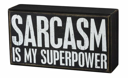 A classic black and white box sign featuring a distressed “Sarcasm Is My Superpower” sentiment. Easy to hang or can free-stand alone. 6″ x 3.25″ x 1.75″