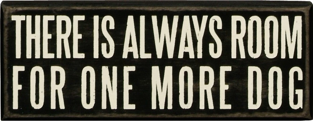 A classic black and white wooden box sign featuring a distressed “There Is Always Room For One More Dog” sentiment. Easy to hang or can free-stand alone.ย 8″ x 3″ x 1.75″