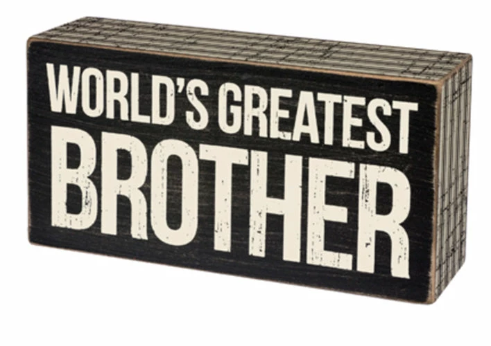 A classic black and white wooden box sign featuring a distressed “World’s Greatest Brother” sentiment. Easy to hang or can free-stand alone.