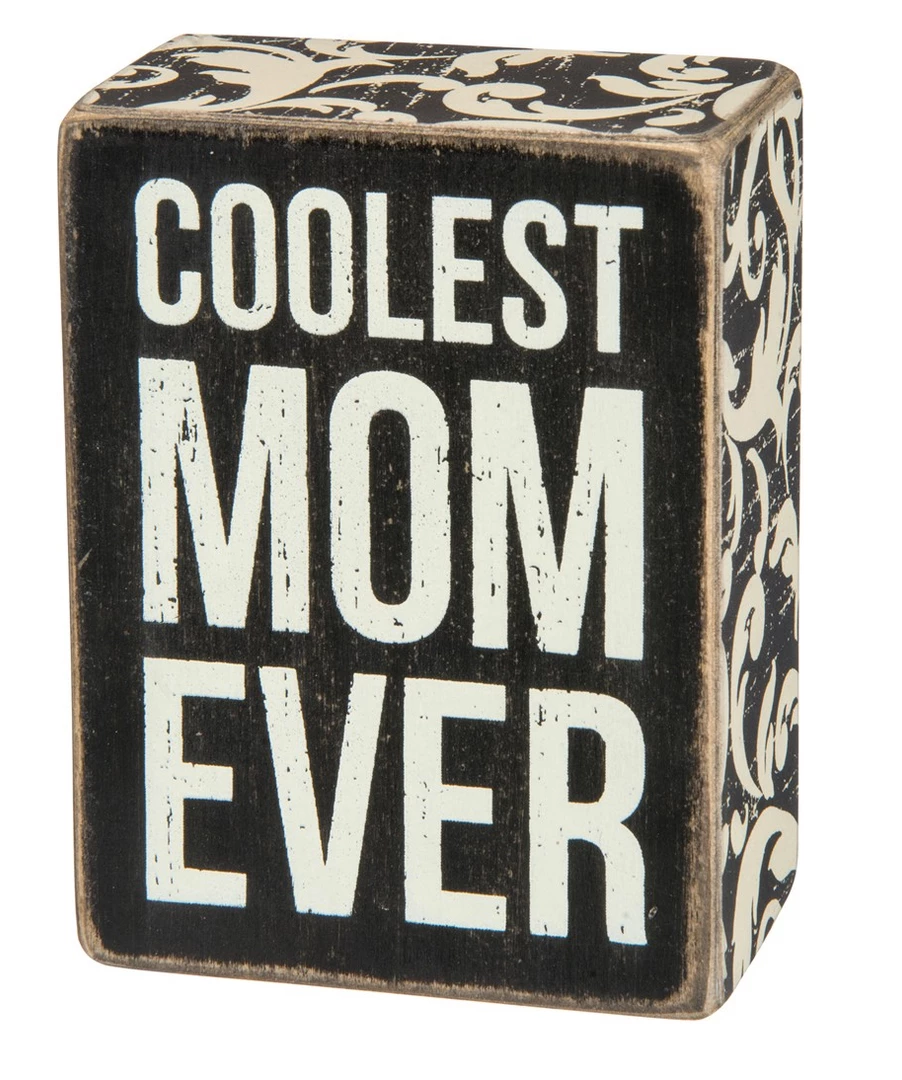 A classic black and white wooden box sign featuring a distressed “Coolest Mom Ever” sentiment with floral abstract trim designs. Easy to hang or can free-stand alone. 3″ย x 4″