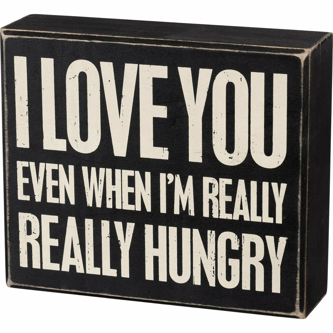 A classic box sign featuring a “I Love You Even When I’m Really Hungry” sentiment. Easy to hang or can free-stand alone. 6.50″ x 5.50″ x 1.75″