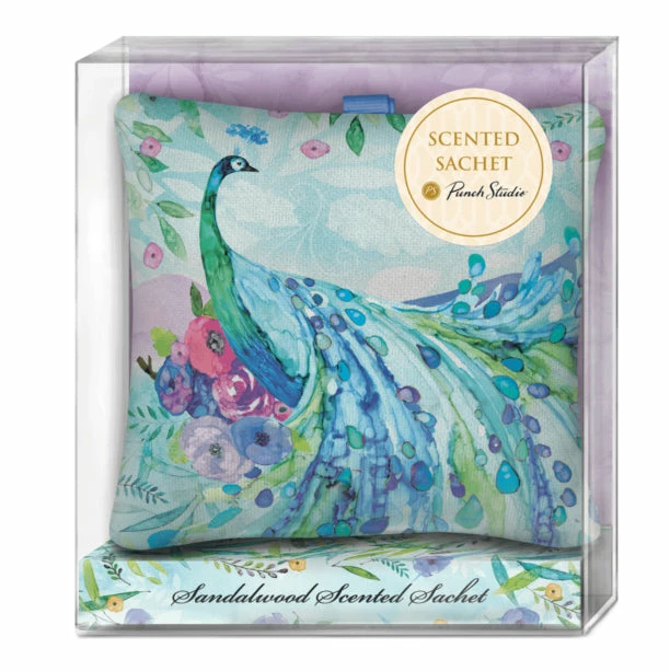 The world’s most beautiful bird gets a sandalwood scent with this fabric pillow sachet from our Pagoda Peacock collection. Includes a hanging ribbon for easy placement in any closet, dresser, or other space in need of fresh air.