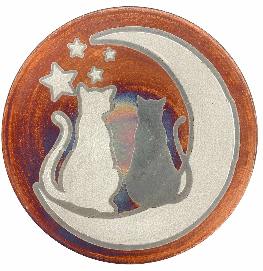 Raku Pottery is light sensitive and will fade if left in direct sunlight. Theseย plates are not food-safe and should not be used for food. Each piece is unique in design and colors and may not look like the photos, please contact us if you have any questions before purchasing this gift.