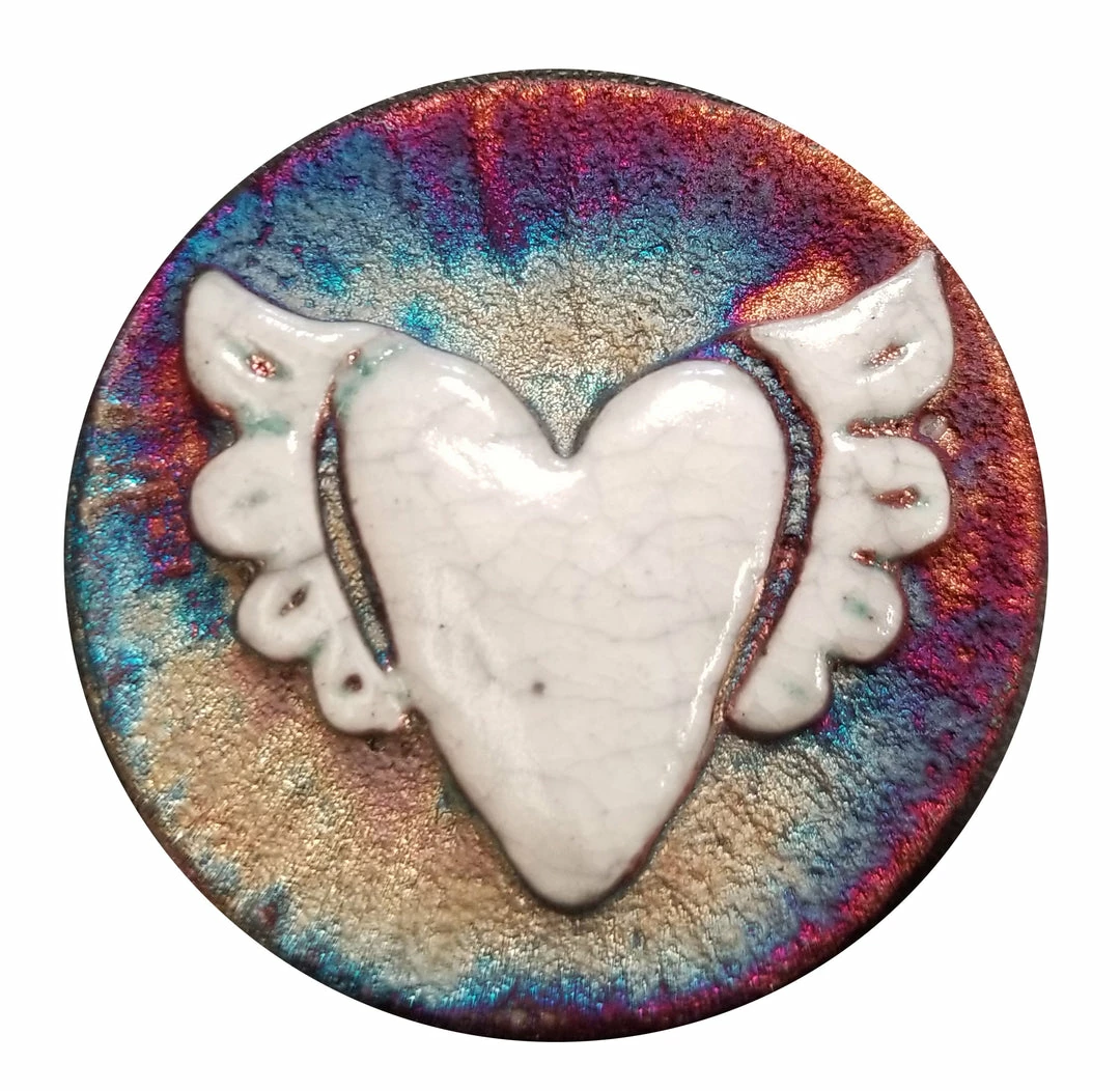 Raku Pottery is light sensitive and will fade if left in direct sunlight. Each piece is unique in design and colors and may not look like the photos, please contact us if you have any questions before purchasing this gift. Handmade Raku Medallions cmome in assorted turquoise crackle, copper matte & copper gloss. Each 1.5″ medallion is crafted by hand. The reverse side is engraved with an inspirational decree and comes with a strong metallic magnet.