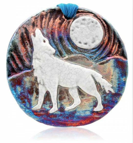 Raku Pottery is light sensitive and will fade if left in direct sunlight. Each piece is unique in design and colors and may not look like the photos, please contact us if you have any questions before purchasing this gift. Each measures 3″ diameter and is adorned with a colorful hand painted 3” silk ribbon for decorating a Christmas tree or wall. Comes with a gift box and information card.