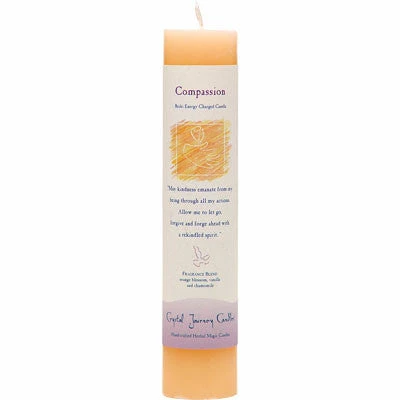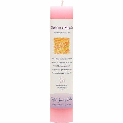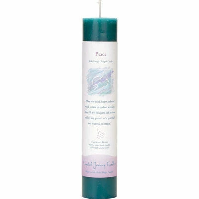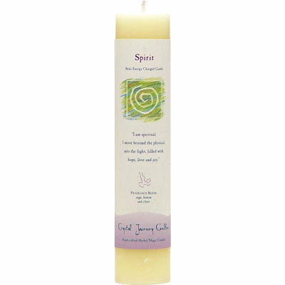 Reiki Infused Universal energy herbal pillar candles are designed with a specific intention using a unique blend of natural essential oils. Each candle includes an affirmation. Candles are crafted from the finest wax and have natural metal-free wicks. 7.25″H x 1.5″W; handcrafted in Connecticut by Crystal Journey Candles.