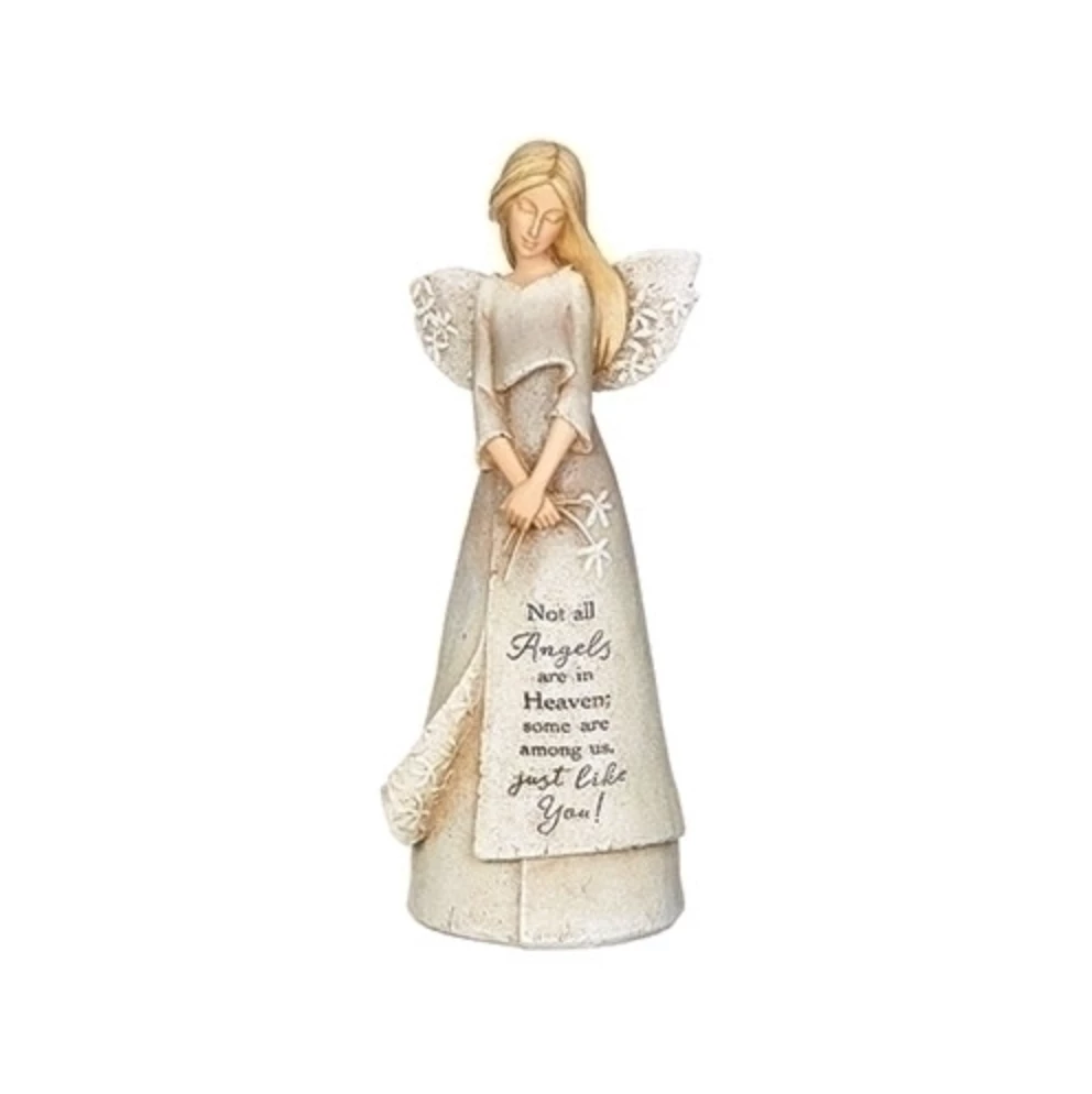 Beautiful gift, this angel is inscribed with the sentiment, “Not all Angels are in Heaven; some are among us. just like You!” Measures 8.5″ height and made of resin/stone. A wonderful and meaningful gift from Roman, Inc. gifts.ย