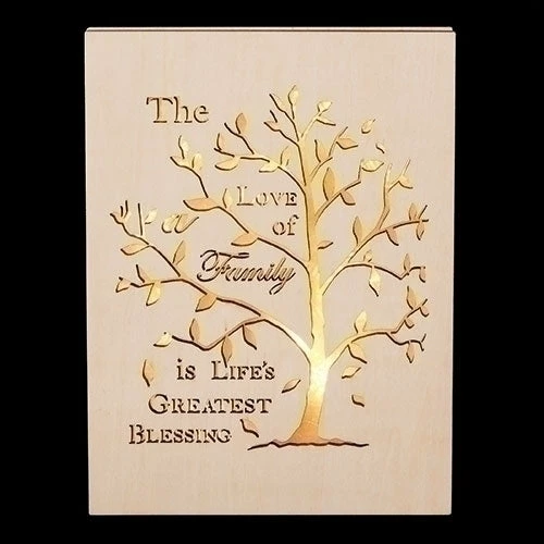 Beautiful gift, this wooden LED tabletop box decor features the sentiment, “The Love of Family is Life’s Greatest Blessing.” Measures 7.75″ in height. A wonderful and meaningful gift from Roman, Inc. gifts.