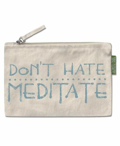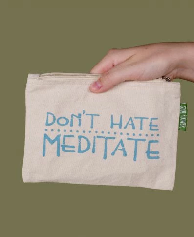 Don’t hate and meditate, always! Use this large zipper pouch with its calming mantra to hold your mala beads, crystals, or jewelry. Meditate with love and trust the universe! Pair this positive message with our Don’t Hate Mediate Small Zipper Pouch and Don’t Hate Meditate Eco Tote Bag. 8.5 x 6 inch pouch. Fair Trade Certified. Hand printed in the USA. 100% organic cotton.