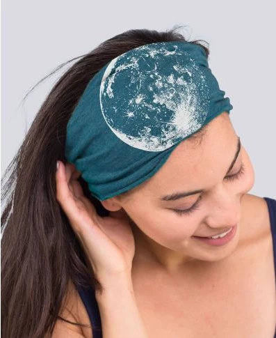 Let your inner moon spirit shine as you wear this Full Moon Boho Headband. The beauty of this hand printed moon image will allow you to shine bright as a full moon in the dark sky. 9 inches wide by 8 inches tall (laying flat) – fabric can stretch from 18 to 26 inches in circumference. Raw seams. Eco Ocean.