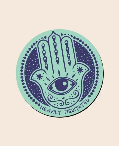 Align your soul and keep the peace with this Heavily Mediated Magnet. Features a Hamsa Hand and third eye, with the words, Heavily Meditated. Stick this magnet to your fridge, car or locker and feel good vibes.