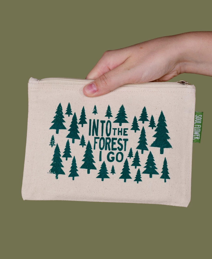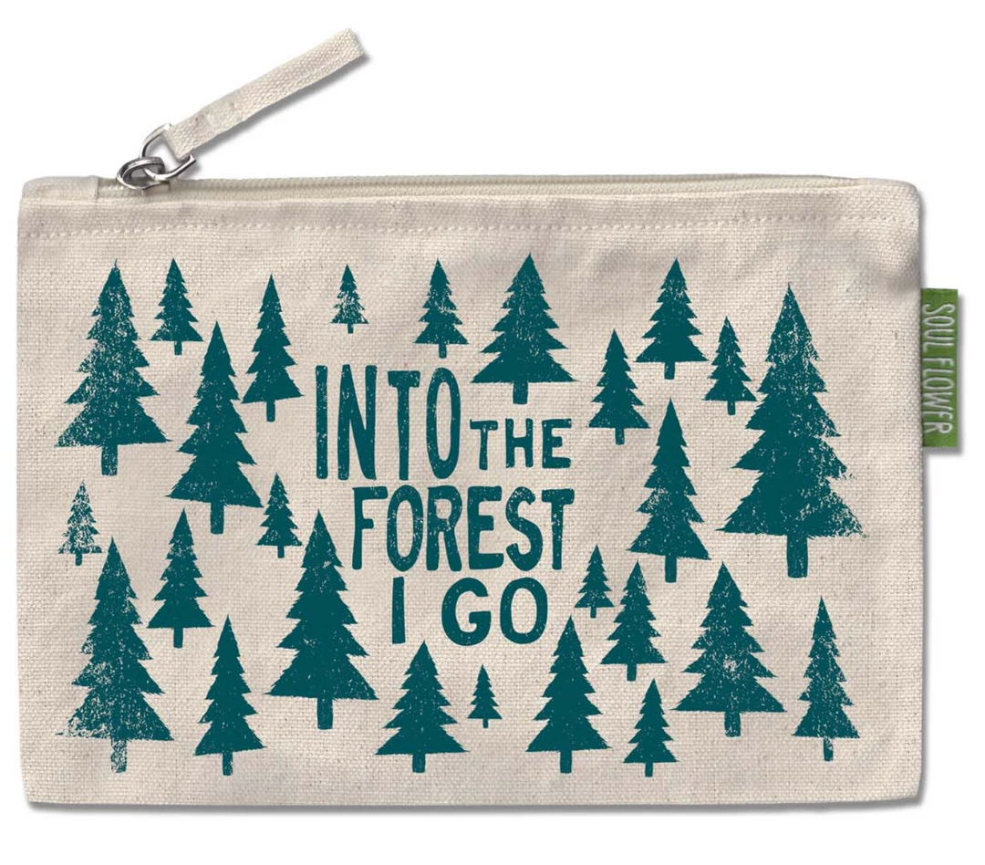 With pine tree art and an inspirational mantra, this Into the Forest Large Zipper Pouch will calm your soul. Pouch reads: Into The Forest I Go. Use this pouch as a first aid kit, sewing bag, charger power cords, or for other cool findings. Pair this eco-friendly bag with our Into the Forest Small Zipper Pouch and Into the Forest Eco Tote Bag.