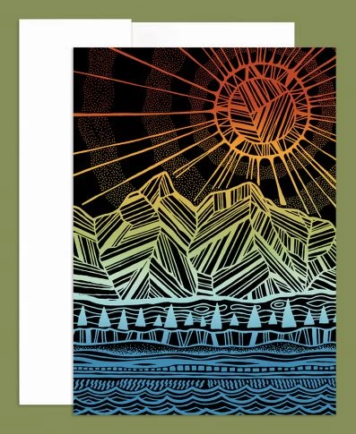 Send your loved ones a reminder to appreciate the earth and keep life simple with a Keep it Natural Greeting Card. Features a colorful geometric mountain scene on the front and a Soul Flower logo on the back. Use the smooth surfaces and blank inside for a special message to the one you love. Envelope included. Digitally printed in the USA on 100% recycled paper. 5 x 7 inches.