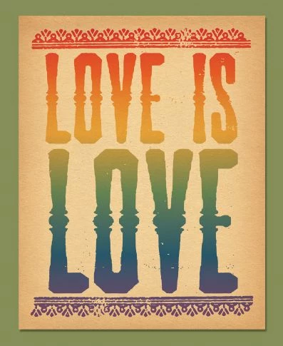 This Love is Love Art Print is filled with so much love! Wherever you place this eco-friendly poster, let love flow. Features a Vintage style background with a rainbow color Love is Love text. USA made. 100% recycled heavyweight, textured paper. 11 x 14 inches.