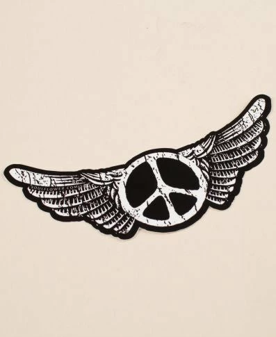 Stay peaceful and rise above the clouds with this Peace Wings Sticker. This black and white design is die cut and the perfect size for a journal, bicycle, or water bottle. Outdoor safe vinyl sticker. Made in the USA.ย 6 x 2.5 inches.