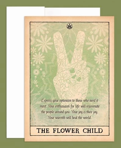 Live wild, flower child. Give The Flower Greeting card to a friend, family member, or yourself as a reminder to bloom one’s beauty into existence. Write a positive message with the blank inside and smooth surface. Front of card reads: Express your optimism to those who need it most. Your enthusiasm for life will rejuvenate the people around you. Your joy is their joy. Your warmth will heal the world. The Flower Child. Back of card features our Soul Flower logo. Envelope included. Made in the USA. 100% recycled paper. 5 x 7inches