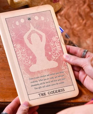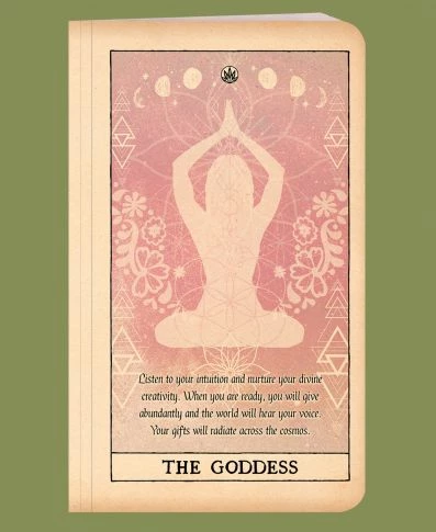 Embrace your beautiful Goddess self as you sketch or write inside this eco-friendly notebook. The Goddess Recycled Notebook reads: Listen to your intuition and nurture your divine creativity. When you are ready, you will give abundantly and the world will hear your voice Your gifts will radiate across the cosmos. The Goddess.